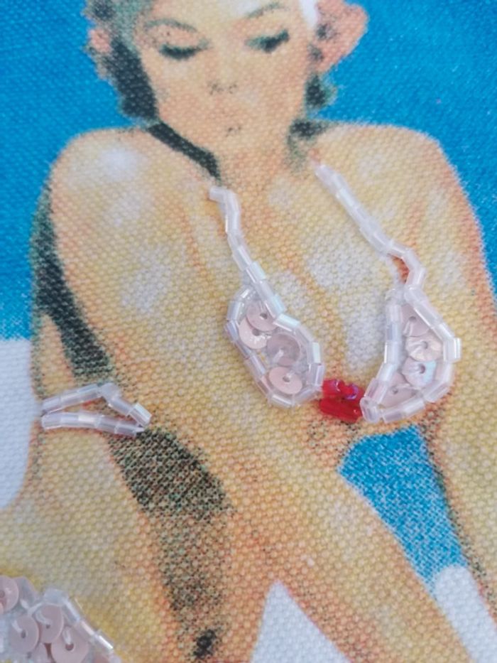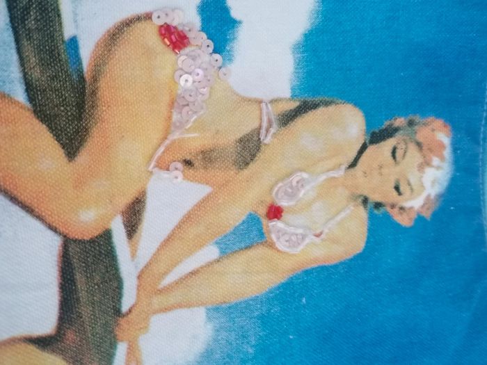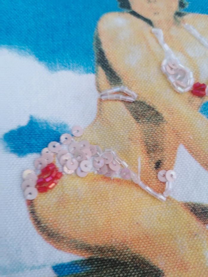 Sac fourre tout Beaucoup de contenance Tâché par endroit Perles dessus Idéal été Bleu ciel Acheter cher il y a longtemps