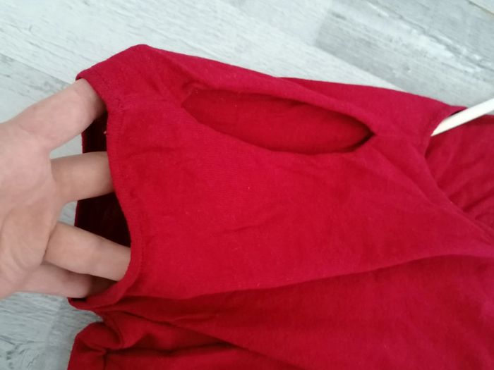 Pull manches courtes Rouge Ajouré derrière Fermeture Épaules ajouré Léger trou derrière suite quand j ai enlevé l'étiquette 😁