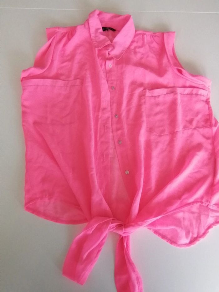 Petit top chemise sans manches Transparent 😬 Rose flashy Idéal été No excuse Taille unique va pour un 36 peut être 38