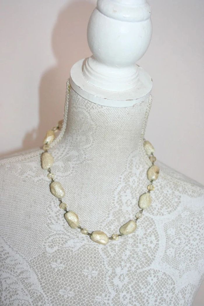 Collier fantaisie cailloux crème, 30g // pas d'étiquette de taille donc ne pas se fier à la taille indiquée sur l'annonce