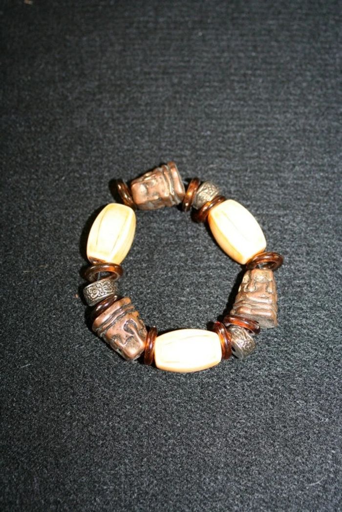 Bracelet élastique fantaisie, pierre beige + charms cuivré, 30g