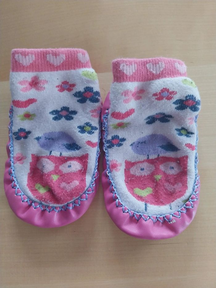 Chaussettes chaussons fille hibou rose - photo numéro 1