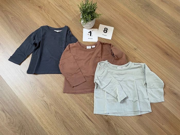 Lot de 3 tee shirts manches longues 18-24 mois zara - photo numéro 1