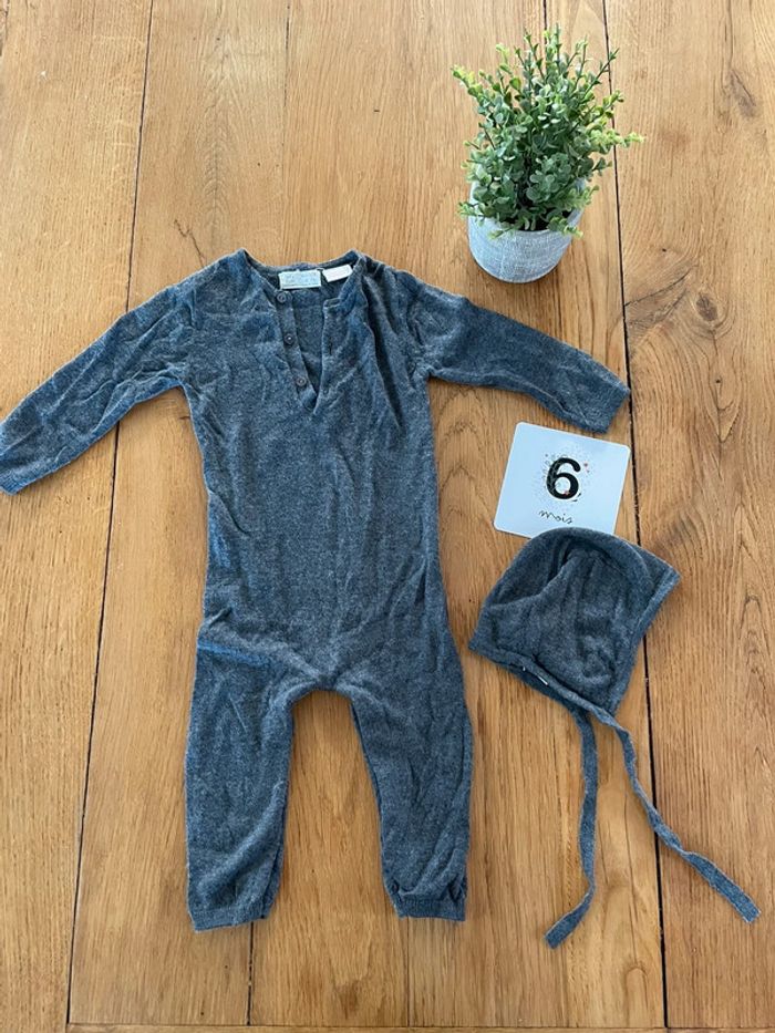 Combinaison Zara en laine 6-9mois et son béguin - photo numéro 1
