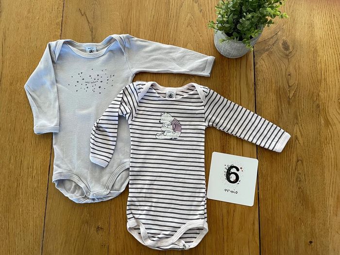 Lot 2 bodies petit bateau manches longues 6 mois - photo numéro 1