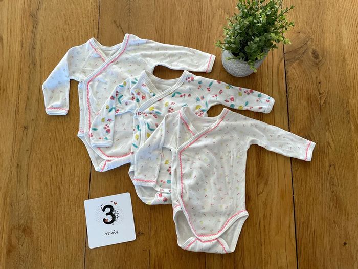 Lot de 3 bodies petit bateau manches longues 3 mois - photo numéro 1