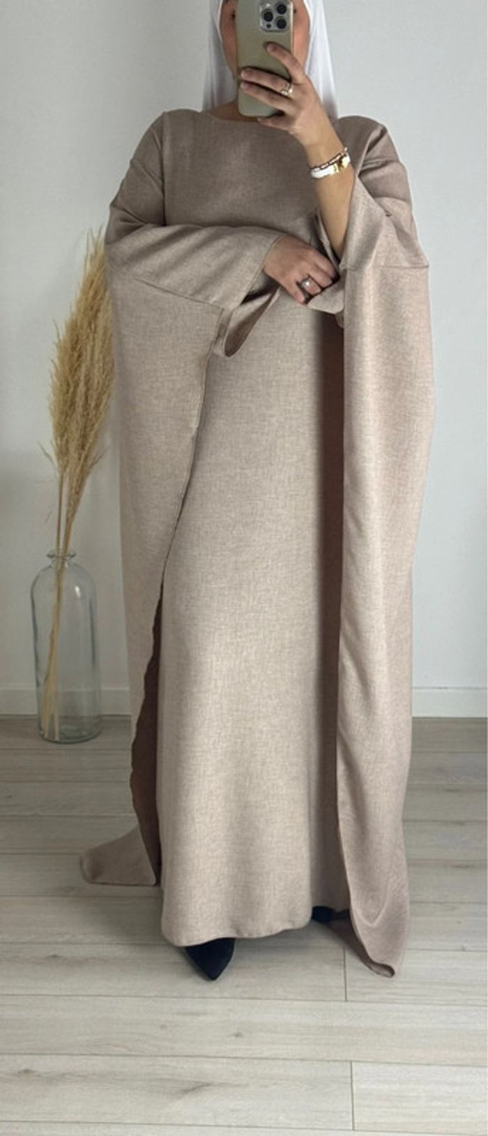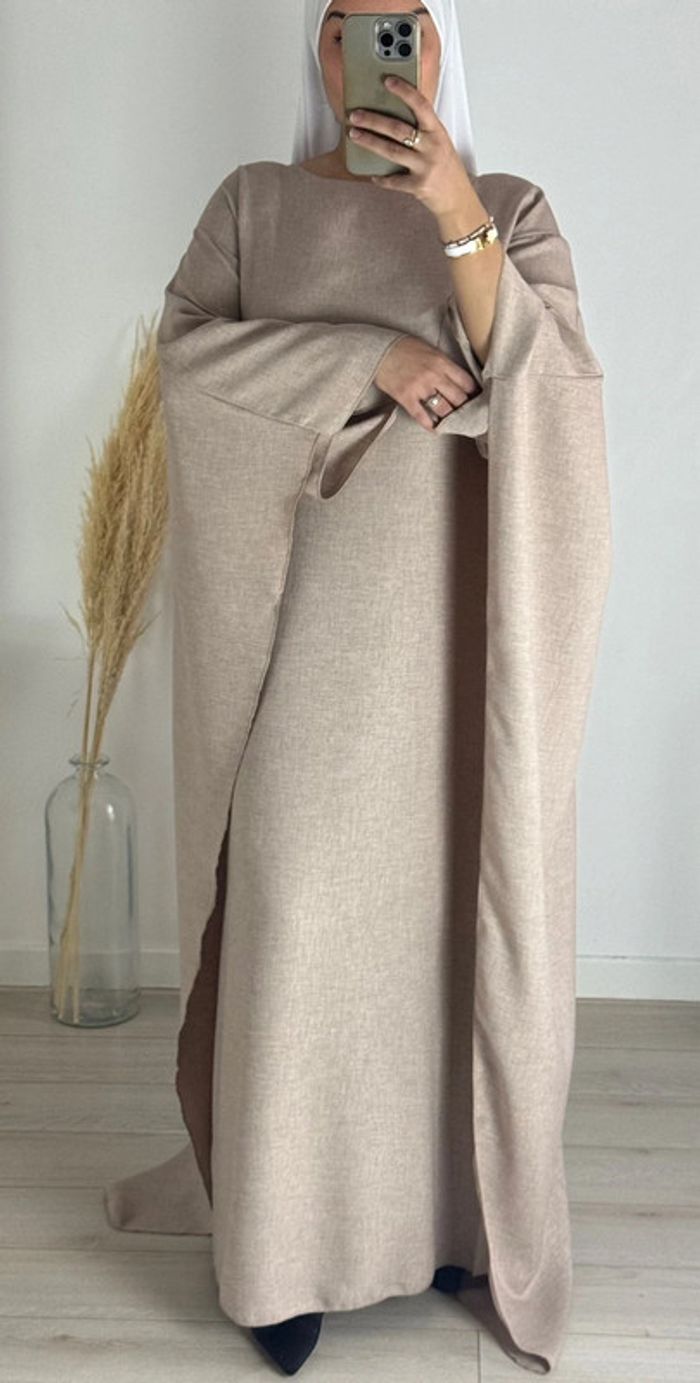 Robe cape en lin taupe claire - photo numéro 1
