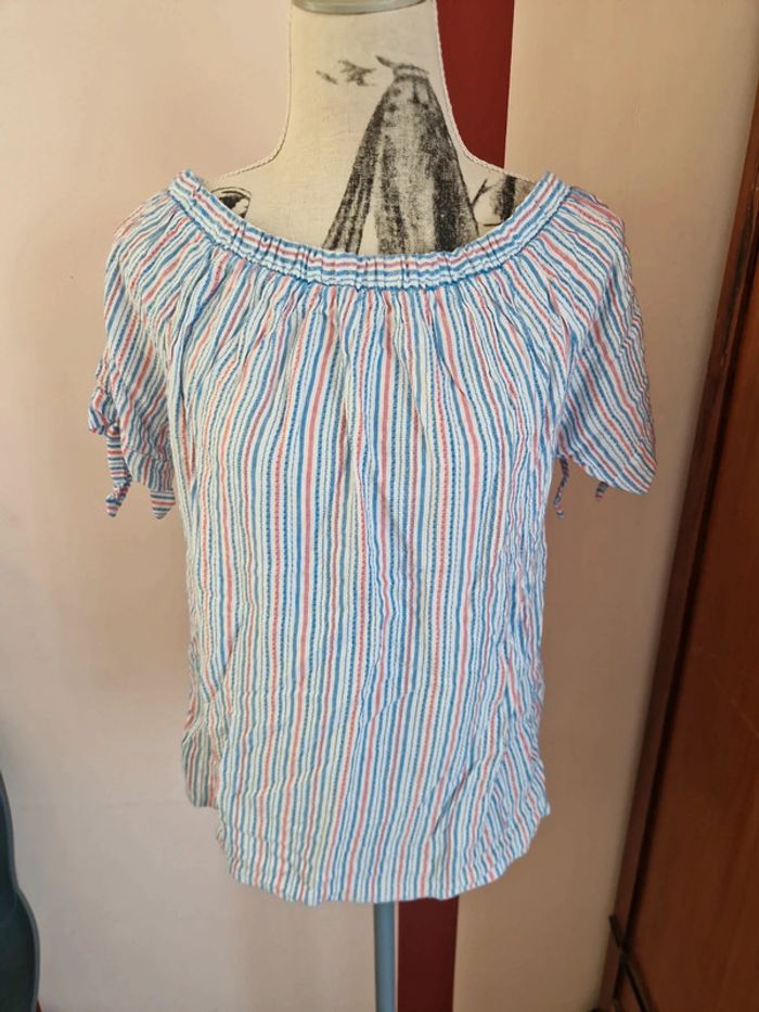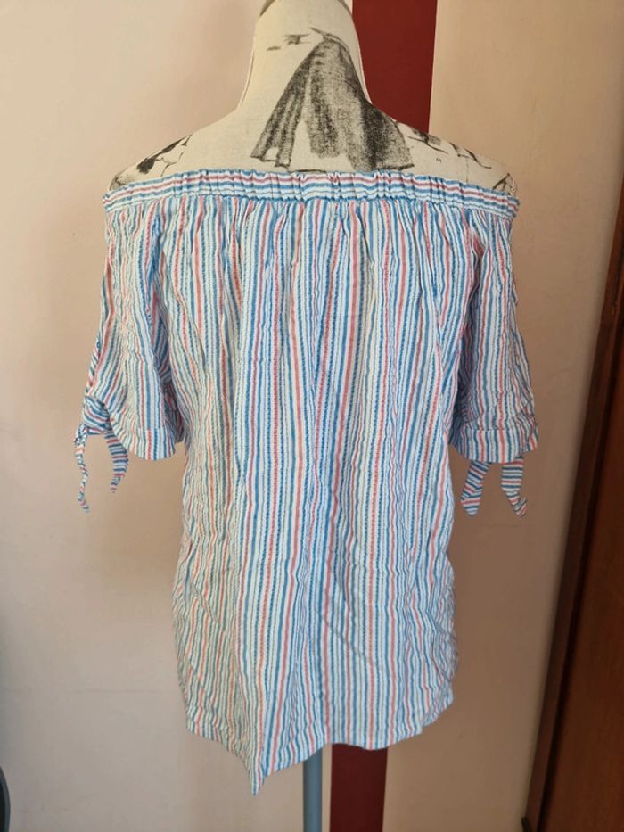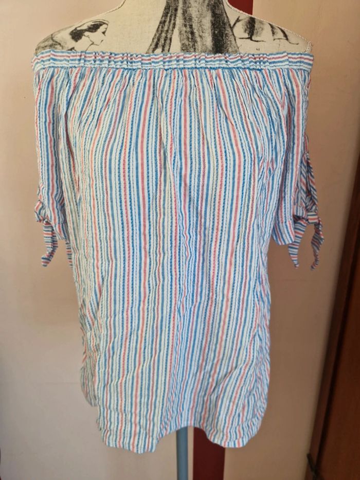 Blouse à rayures, épaules dénudées ou pas, encolure élastique, taille L, de la marque Etam, en très bon état Mesure aisselles : 49 cm