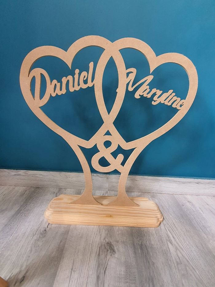 Ensemble de cœur entremêlés personnalisé. Cœur en mdf. Socle en pin Plusieurs taille disponible 40cm 35e idéale pour un mariage ou anniversaire de mariage Privilégier shop2shop