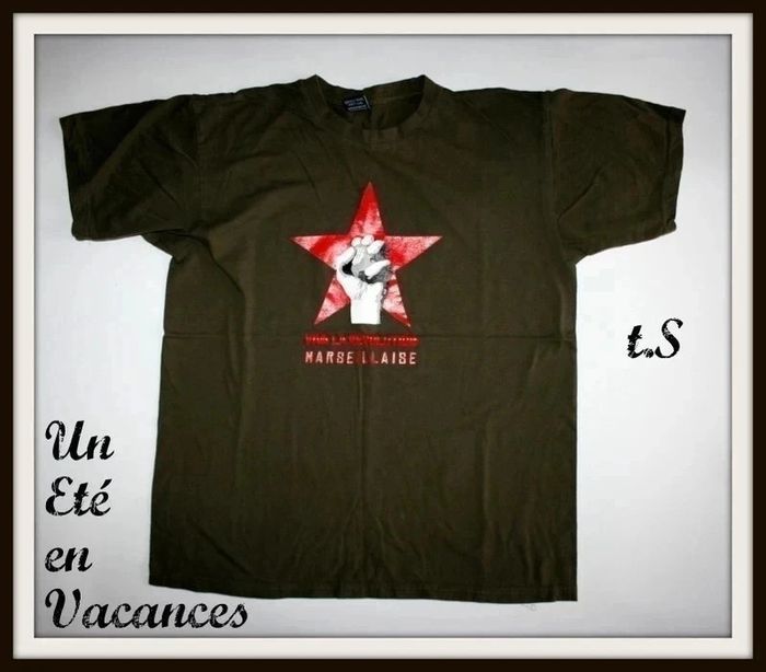 Tee shirt kaki "Un Eté en vacances" mention "Viva la révolution marseillaise" taille S