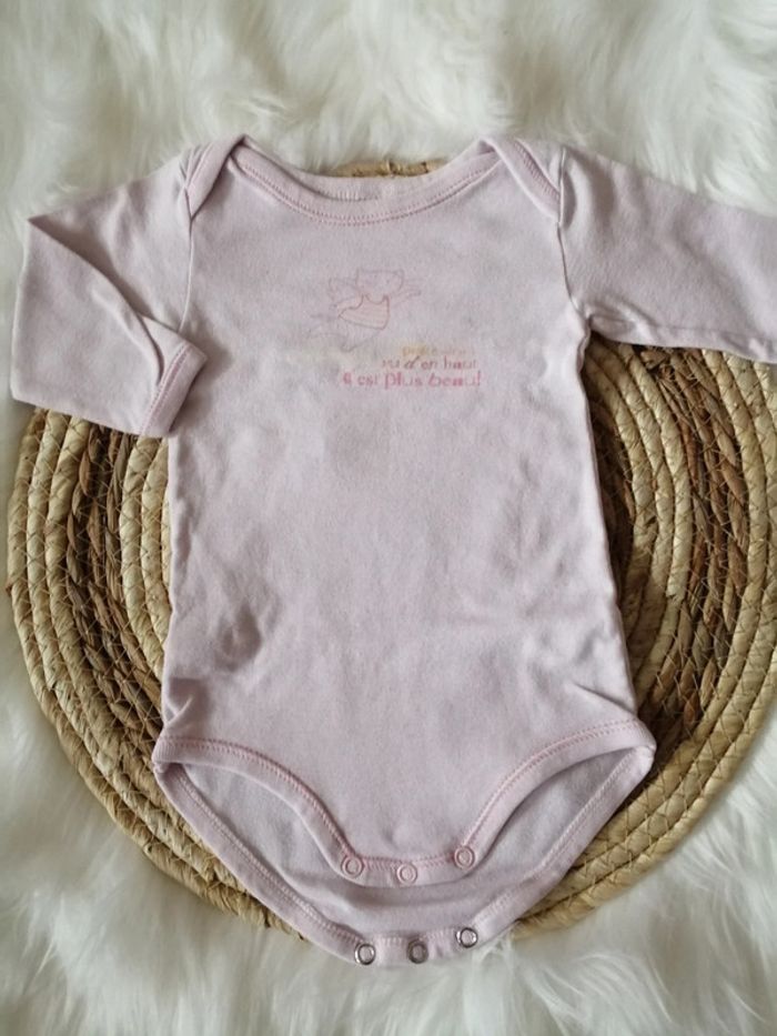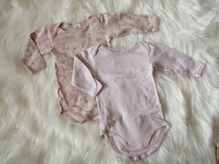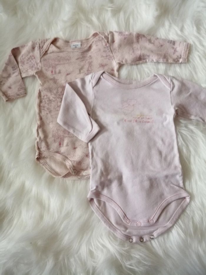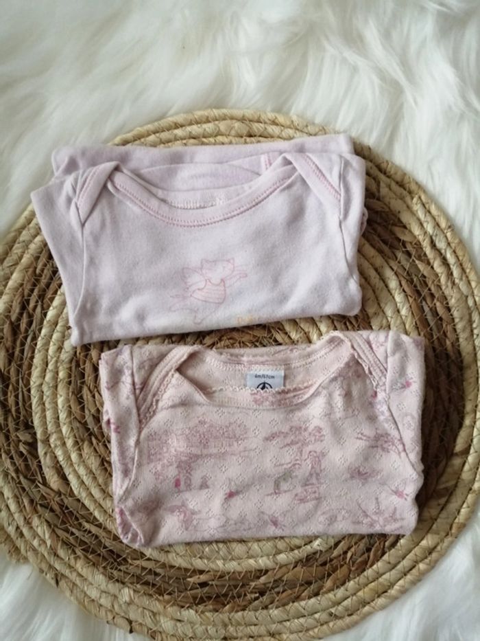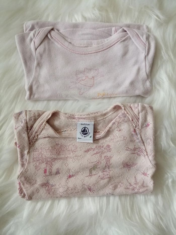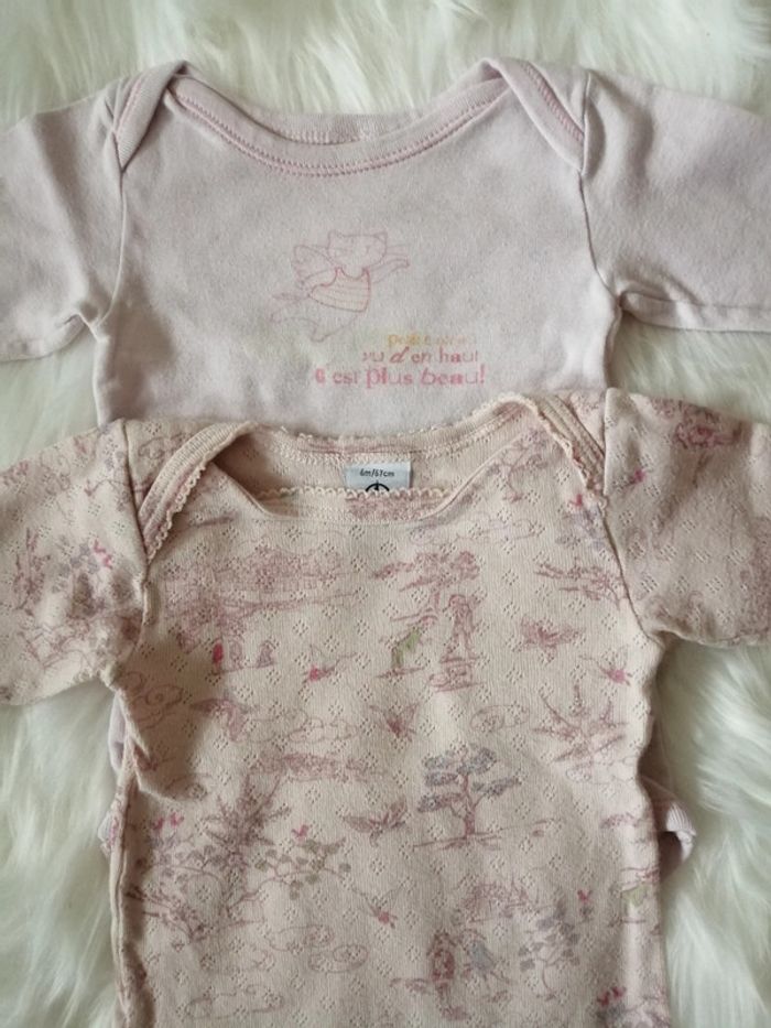 Lot de 2 bodies manches longues 6 mois Petit bateau Pas mal portés mais toujours en Bon état. Ni trou ni tâche - 1 rose pâle - 1 rose pâle imprimé en coton ajouré #lily2905fille6mois