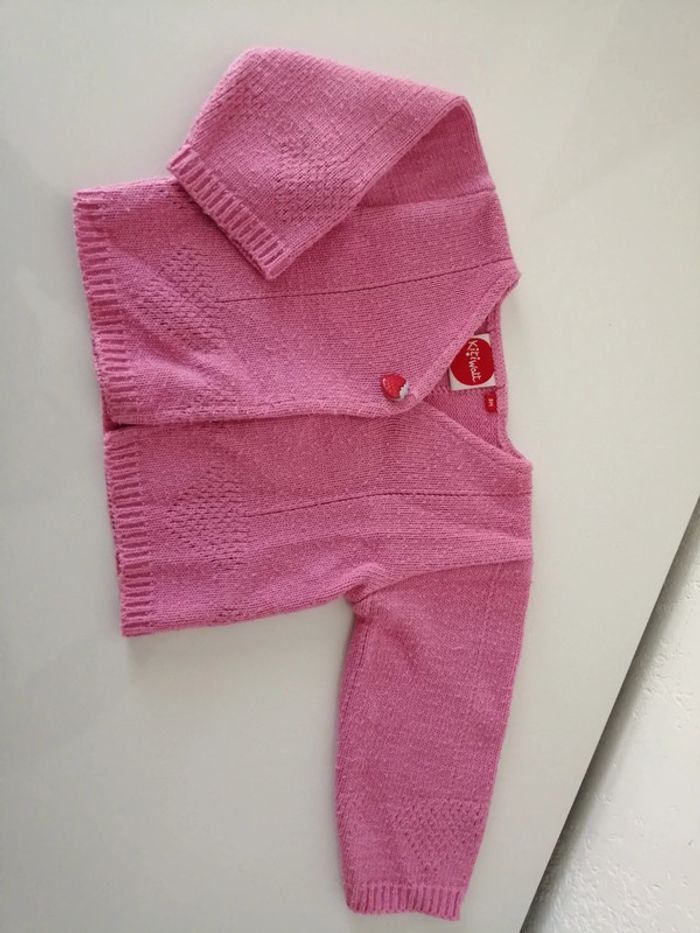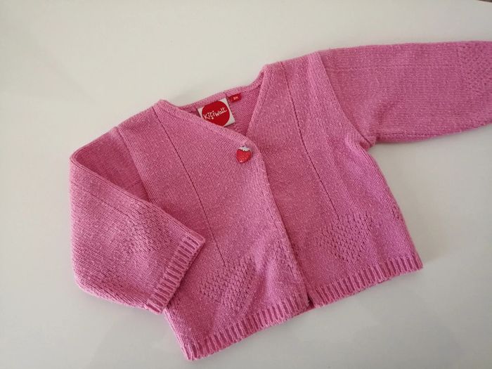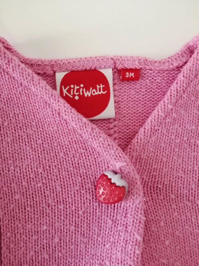 #lily2905fille3mois Gilet 3 mois Kitiwatt Rose Bouton fantaisie fraise bon état, un peu bouloché