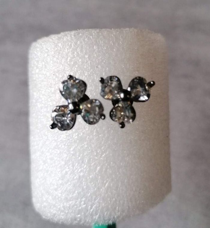 Boucles d'oreilles avec 3 strass blancs sur base noire neuves