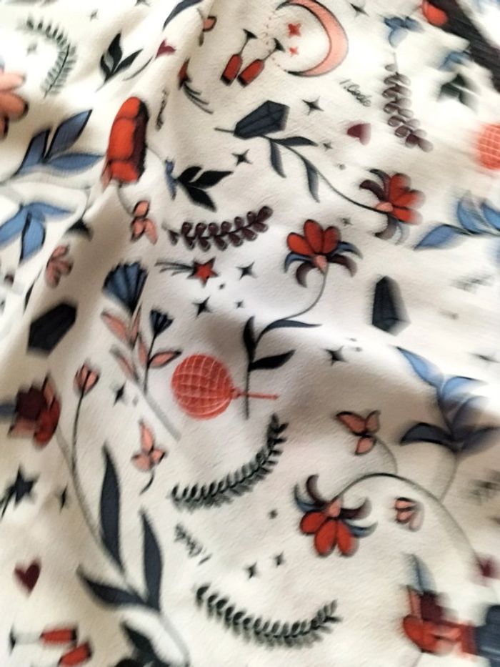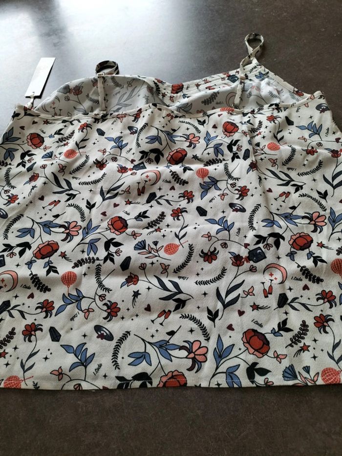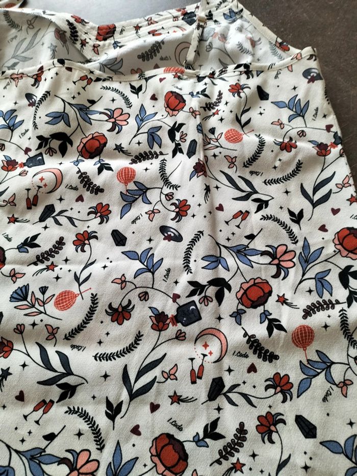 Top neuf de couleur crème avec motifs thème feuilles. 100% viscose Neuf avec étiquette d'achat. I.Code.