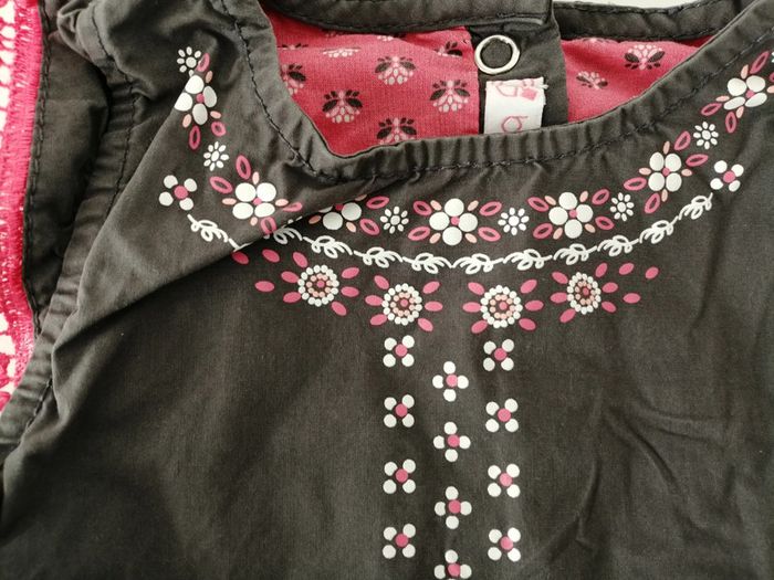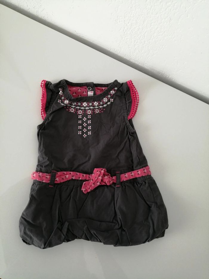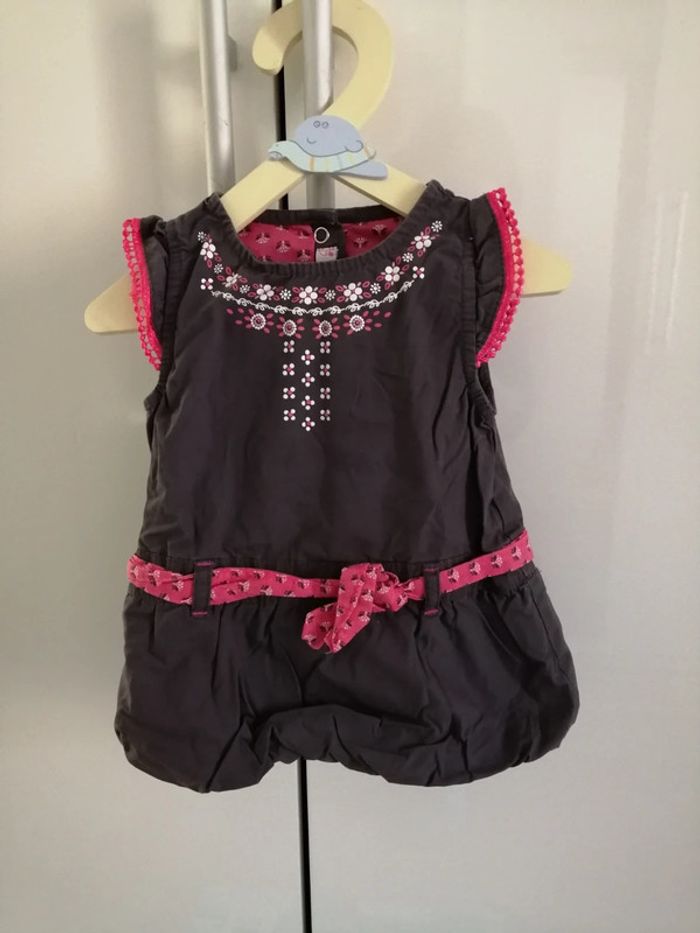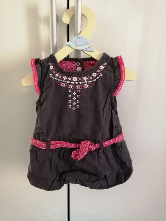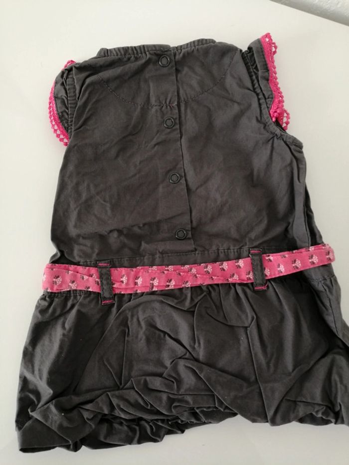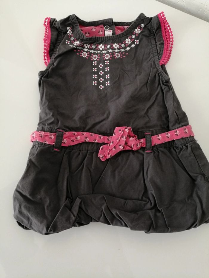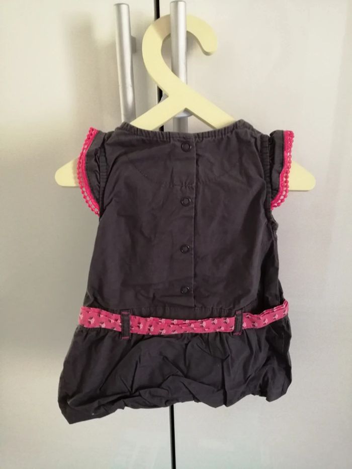 #lily2905fille3mois Robe forme boule 3 mois Gemo Marron gris et rose vif Ceinture à nouer amovible Très bon état