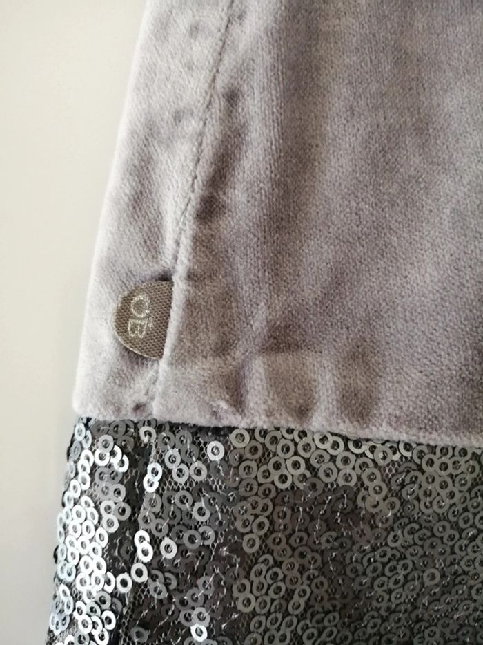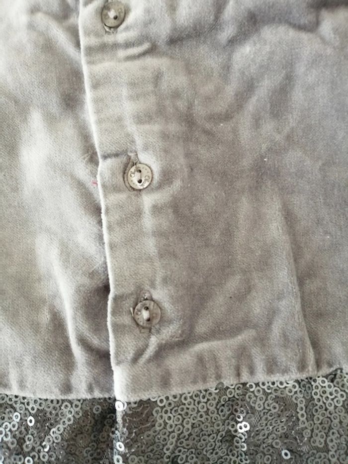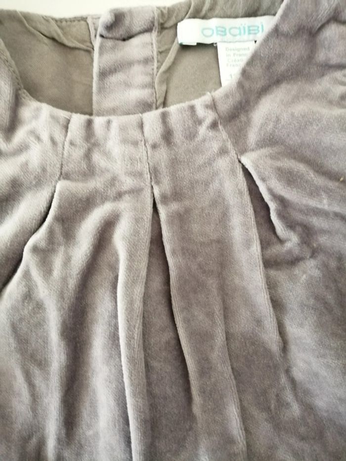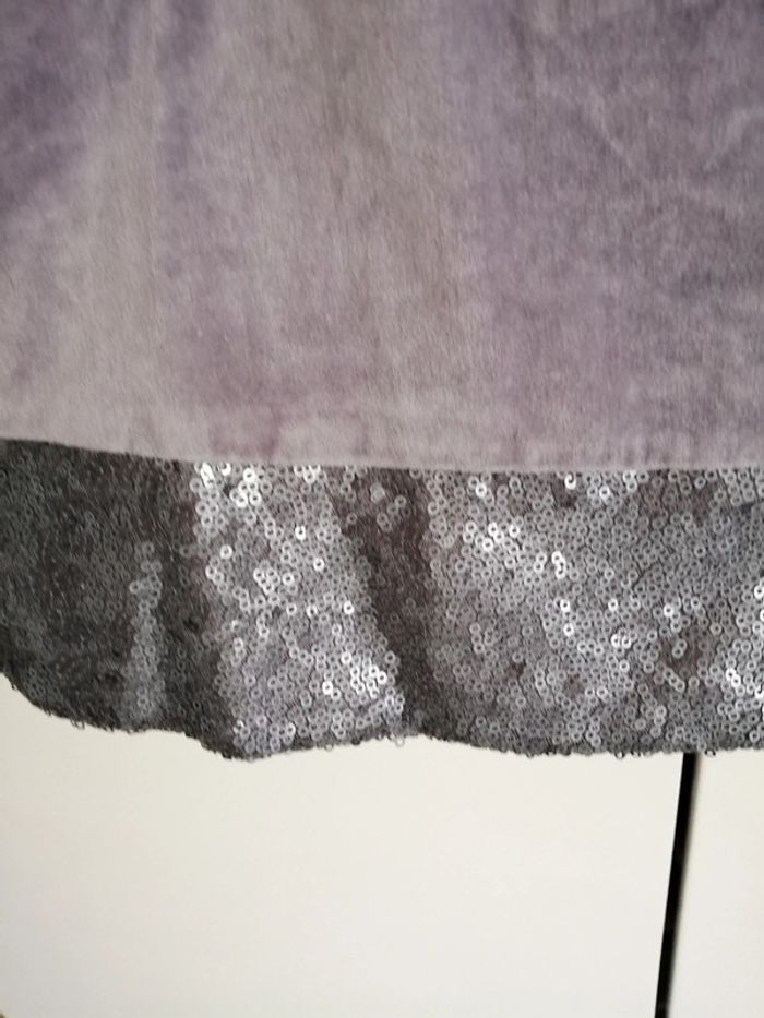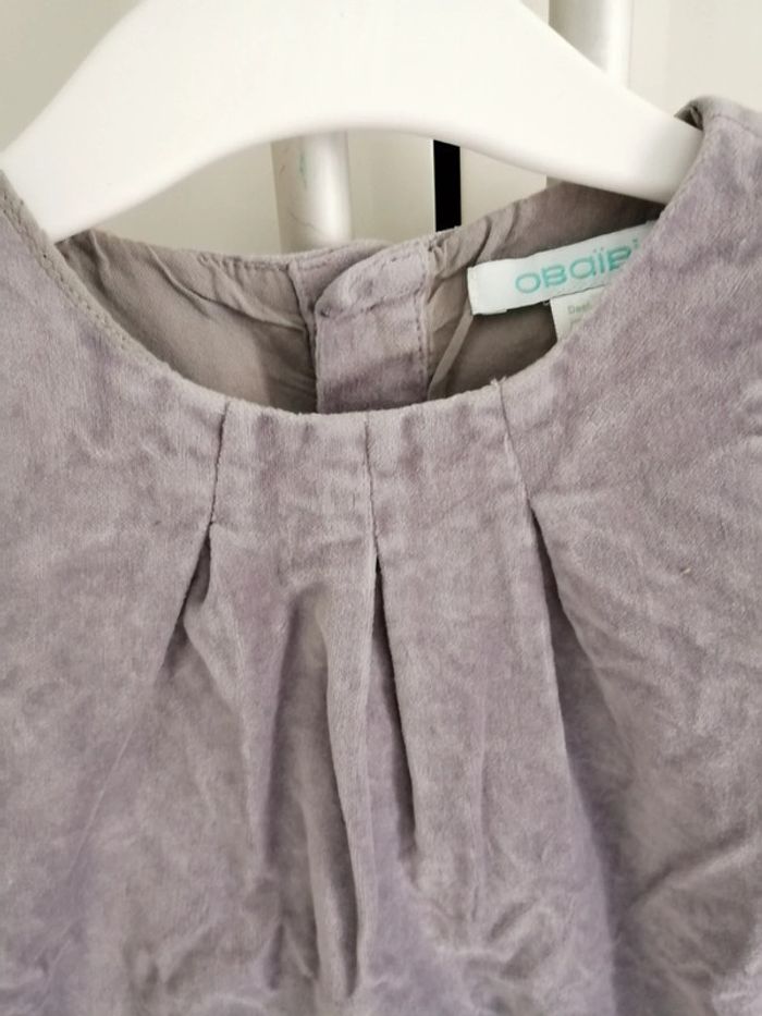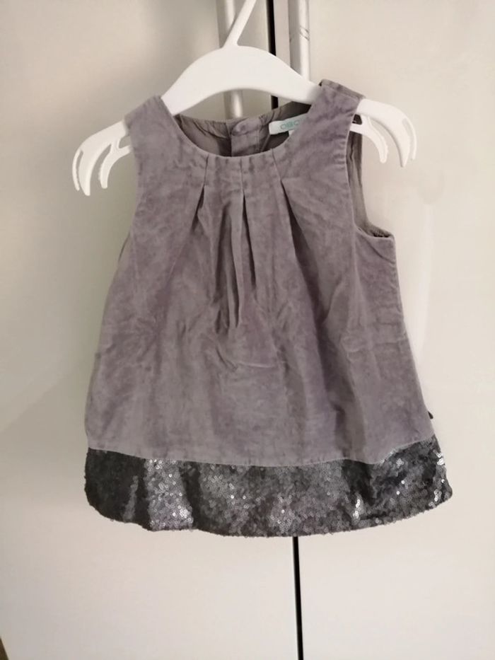 Robe chasuble en velours gris tout doux Paillettes argent et grises au bas de la robe Doublée 12 mois Obaibi Très bon état. Mise une fois pour une cérémonie Idéale pour un mariage, baptême, Noël ou occasion particulière #lily2905fille12mois
