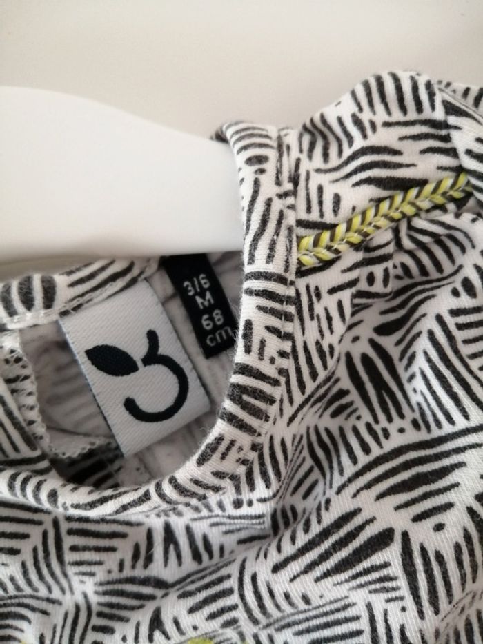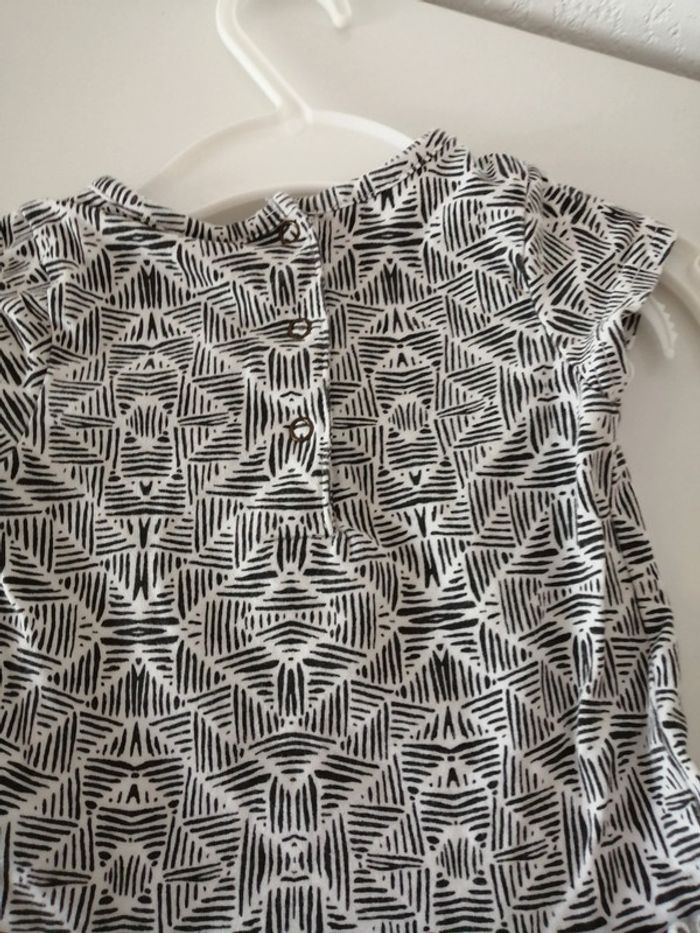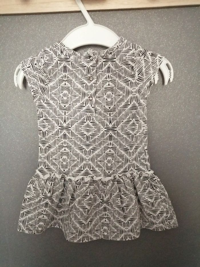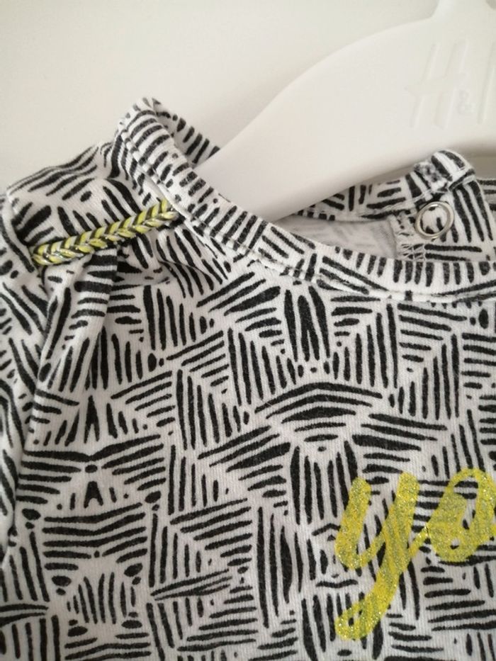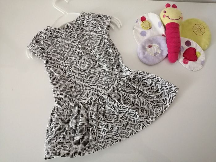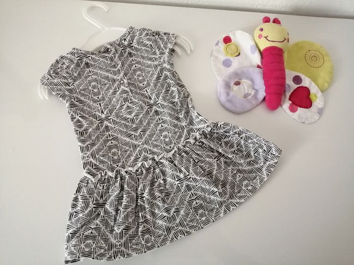 Robe manches courtes Marquée 3/6 mois mais taille comme un 6 mois 3 Pommes Noire et blanche, motif ethnique Inscription "You rock girl" en jaune pailleté Parfait état #lily2905fille6mois