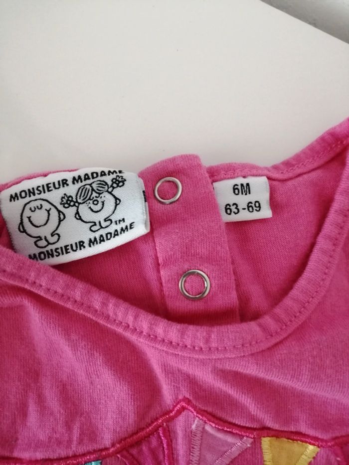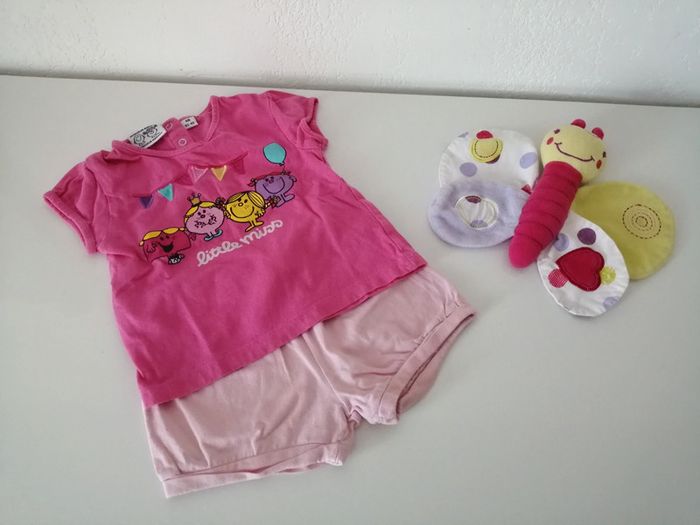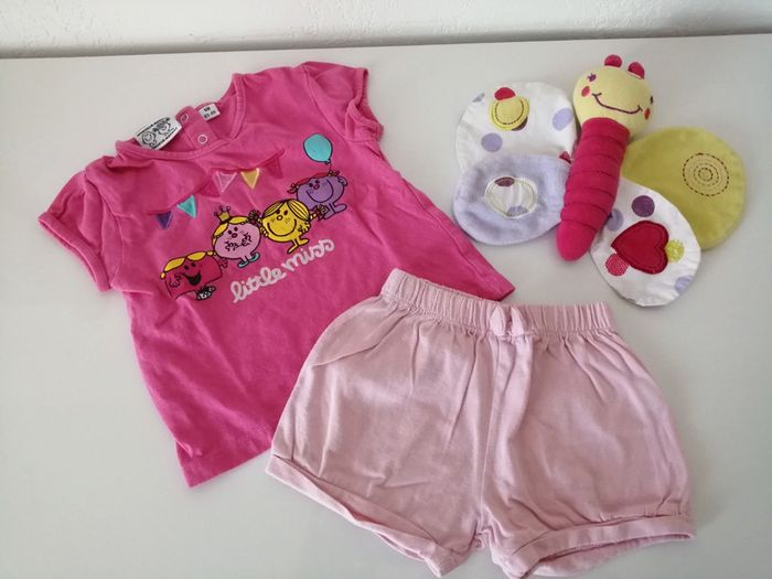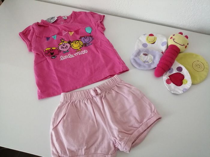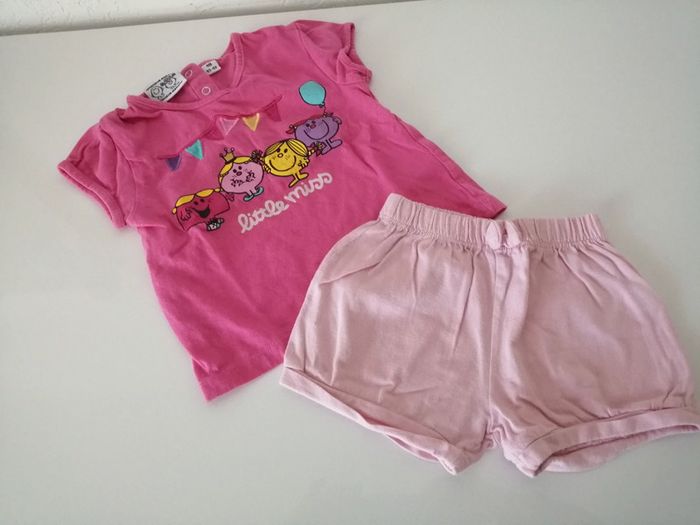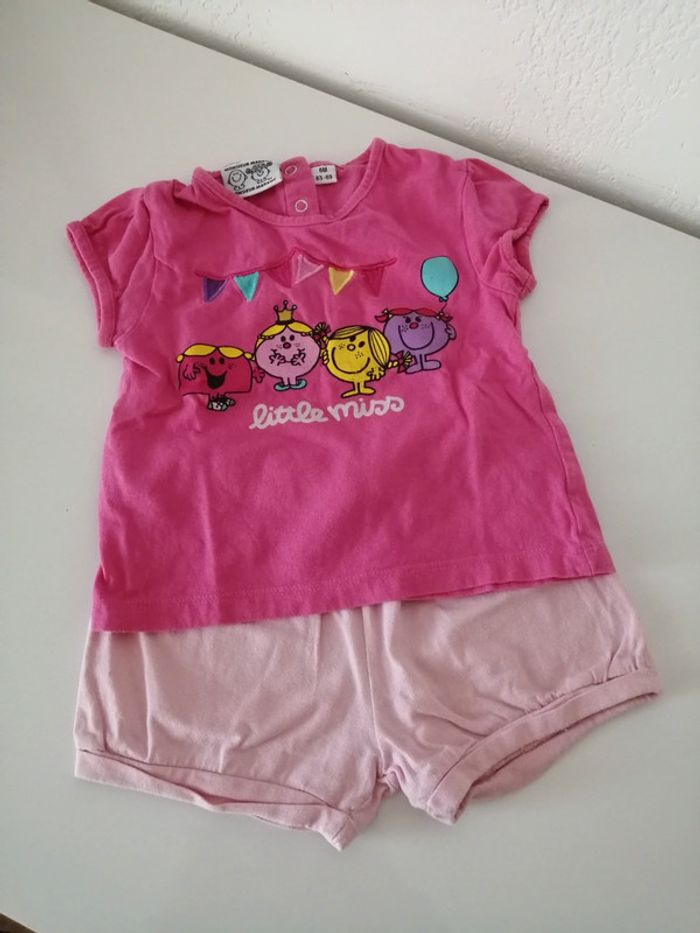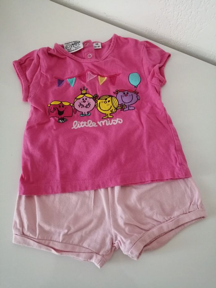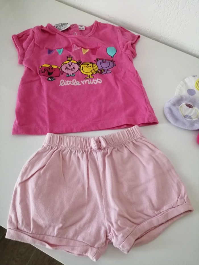Ensemble 2 pièces 6 mois Très bon état - 1short rose pâle, tex - 1 T.shirt manches courtes rose vif, Monsieur Madame #lily2905fille6mois