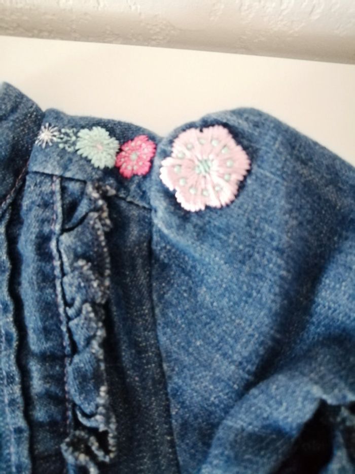 Robe en jean doublé Forme boule 6 mois Orchestra Broderies fleurs roses et bleues Très bon état #lily2905fille6mois