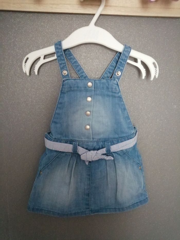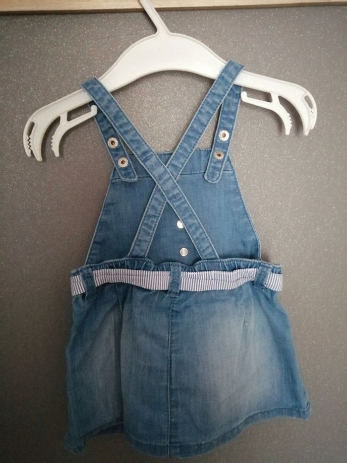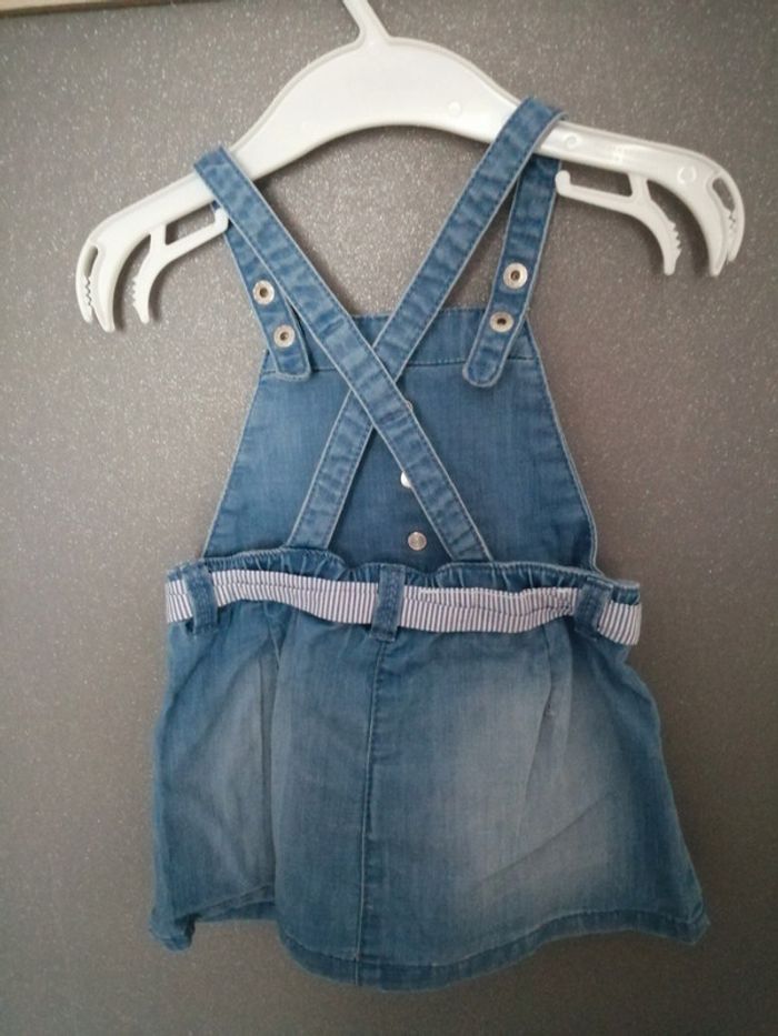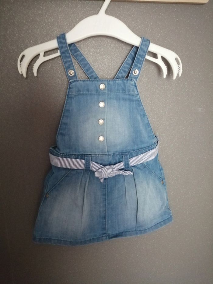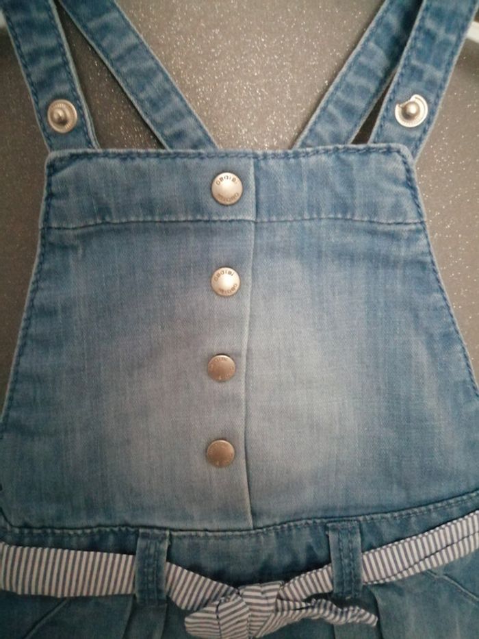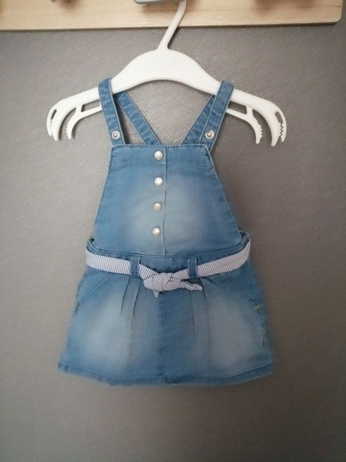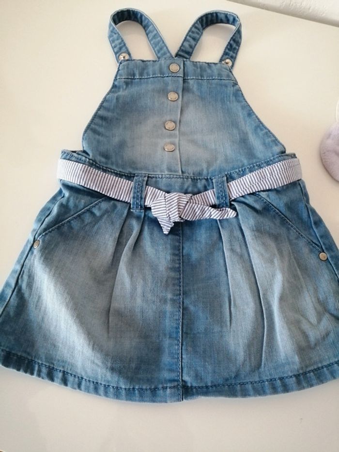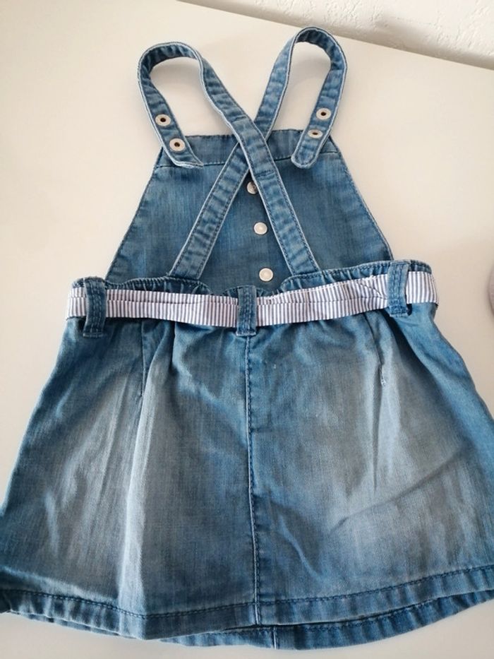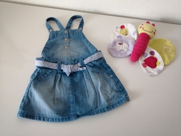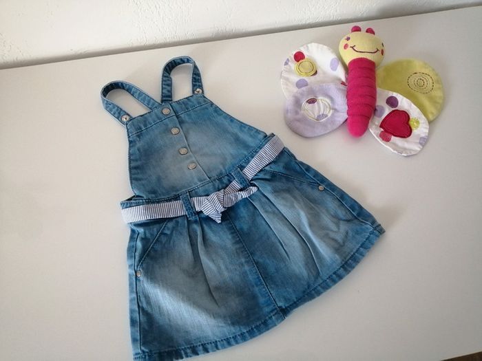 Robe en jean souple clair Ceinture à nouer rayée bleu et blanc Obaibi 6 mois Parfait état #lily2905fille6mois