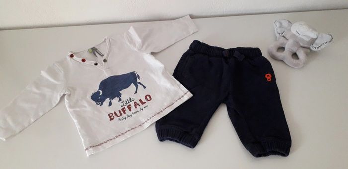 Ensemble 2 pièces 6 mois Très bon état - 1 pantalon type jogging. Bleu marine. Obaïbi - 1 T.shirt manches longues Orchestra #lily2905garçon6mois