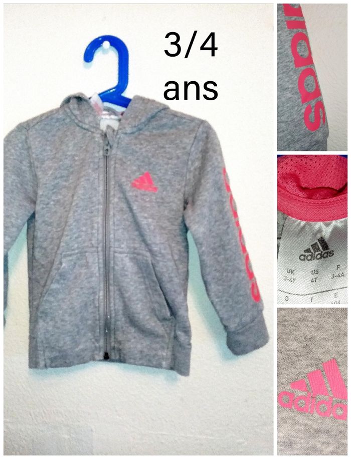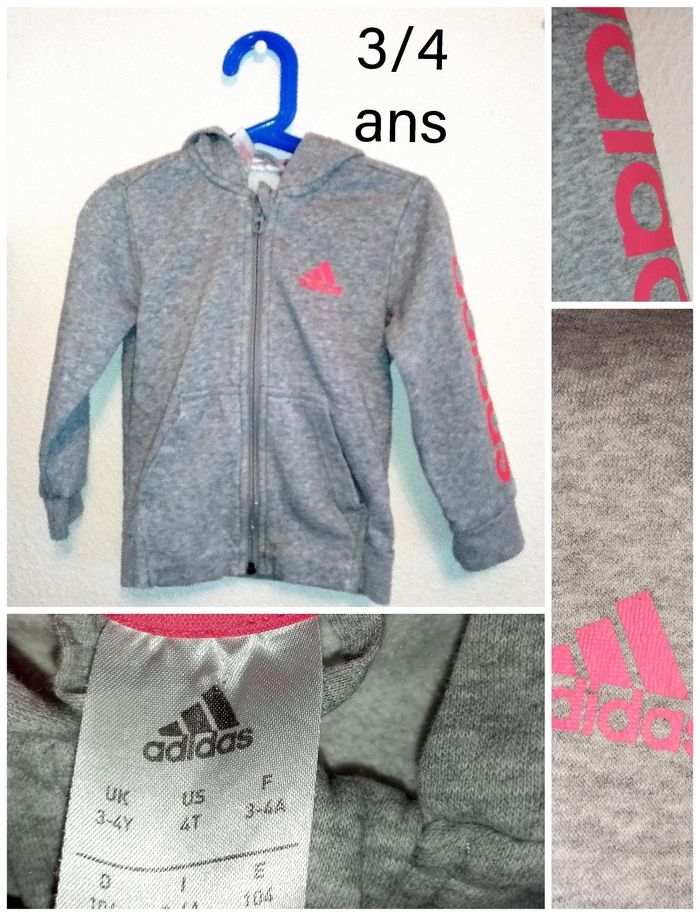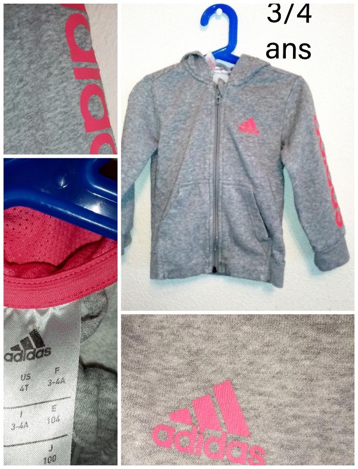 3/4 ans Adidas veste zippé à capuche rose et gris toutes saisons /Excellent état - photo numéro 28