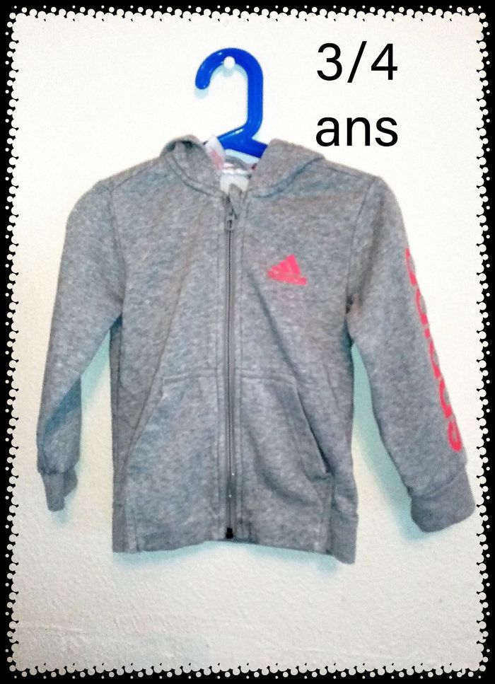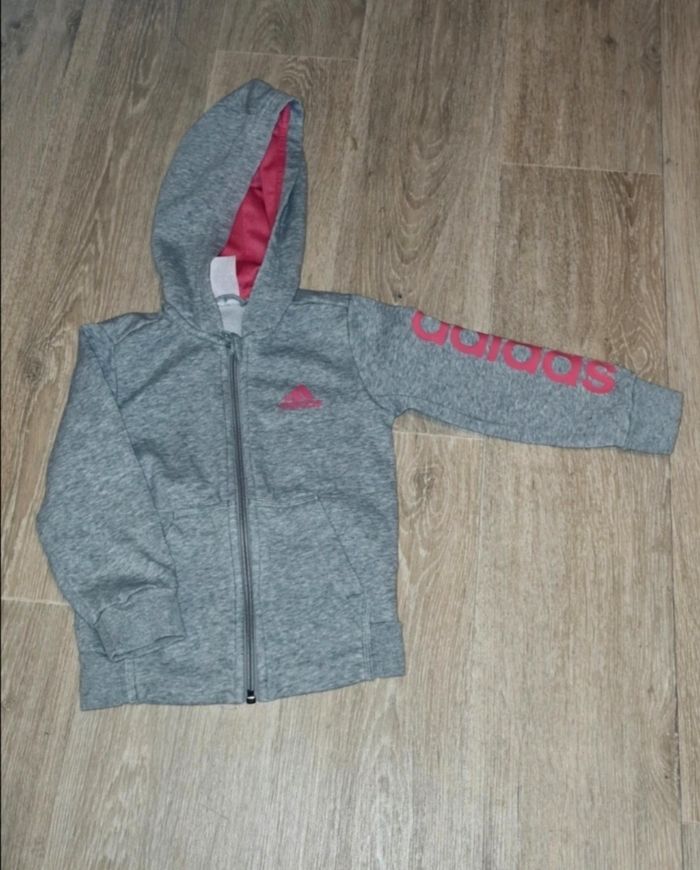 3/4 ans Adidas veste zippé à capuche rose et gris toutes saisons /Excellent état - photo numéro 1