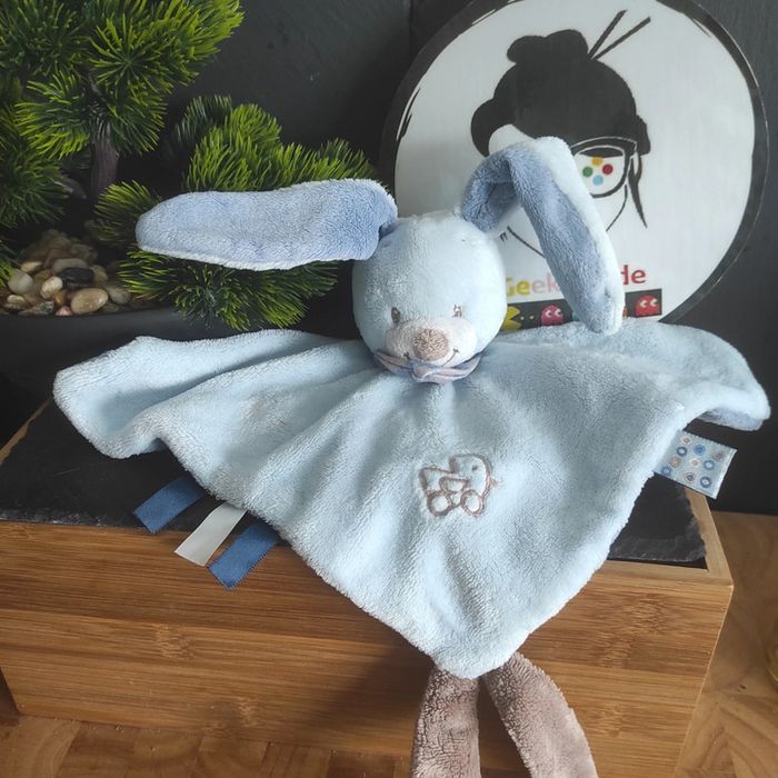 Doudou plat  Nattou Lapin Alex Bibou Bleu marron Canard Jouet #geektradedoudou Afin de ne pas abîmer les doudous et de laisser le choix dans l'utilisation de la lessive les peluches ne sont pas lavées avant envoi Bel état Étiquette lisible Description complément : Petit nettoyage à prévoir Vous achetez ce que vous voyez les photos font entièrement partie de la description Transport : Les frais de transport comprennent les frais du transporteur ainsi que l'emballage pour protéger au mieux votre achat. Chaque achat est envoyé en format colis avec numéro de suivi Le poids du colis est de 500g finit (je ne peux pas faire moins) il peut donc y avoir plusieurs objets dans le carton si vous le souhaitez (contactez moi afinde grouper les frais de port) Référencement : #geektradedoudou #peluche #plush  #doudou #enfant #bebe #disney #nicotoy