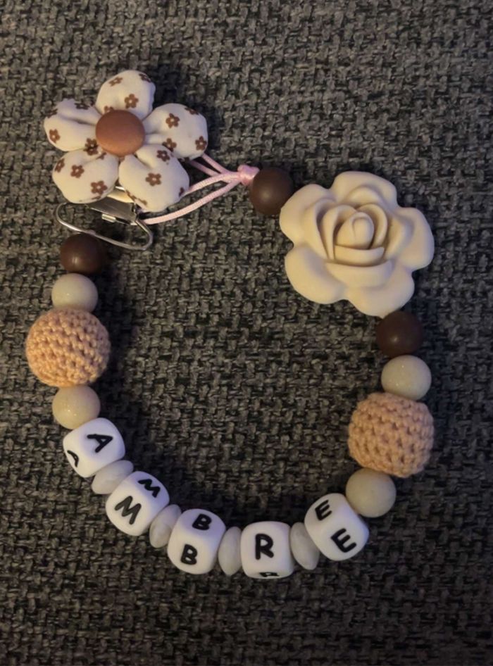 Attache tétine personnalisé en silicone ou en bois au souhait de l’acheteur . Personnalisable au choix de l’acheteur que ce soit la couleur comme le prénom ou le thème . Le fil est doublé pour plus de sécurité tout le long de l’attache tétine. N’hésitez pas à me demander et regarder mon dressing. Une photo vous sera envoyée avant l’expédition pour vous ayez un aperçu du rendu. Tous les produits sont réalisés avec du materiel spécial conçu aux bébés , enfants.