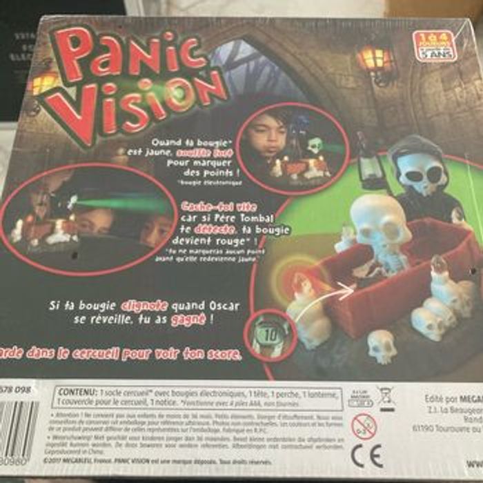 Neuf. Souffle un maximum de bougies pour aider Oscar à sortir de son cercueil ! Quand ta bougie est jaune, souffle fort pour marquer des points. Mais attention, Père Tombal, te surveille … Cache-toi vite car s’il te détecte, ta bougie devient rouge, tu ne marqueras aucun point avant qu’elle redevienne jaune. Si ta bougie clignote quand Oscar se réveille, en éjectant le couvercle, tu as gagné ! Regarde dans le cercueil pour voir ton score. Qui fera le meilleur score ? Jeu avec détecteur de mouvements - 2 niveaux de jeu. Contenu du coffret 1 socle cercueil avec bougies électroniques, 1 tête, 1 perche, 1 lanterne,1 couvercle pour le cercueil, 1 notice