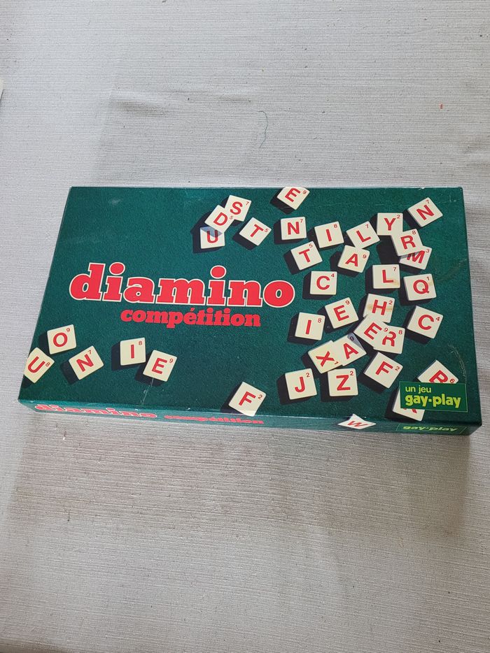 années 80 / 90 complet boite en état d'usage Diamino est, avec Lexicon, l'ancêtre des jeux de lettres. Le but est de croiser des mots. Chaque lettre a une valeur correspondant à sa difficulté de placement. Ça doit vous rappeler un autre jeu, non ? marque Gay play made in France