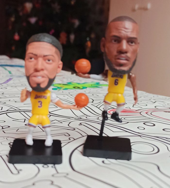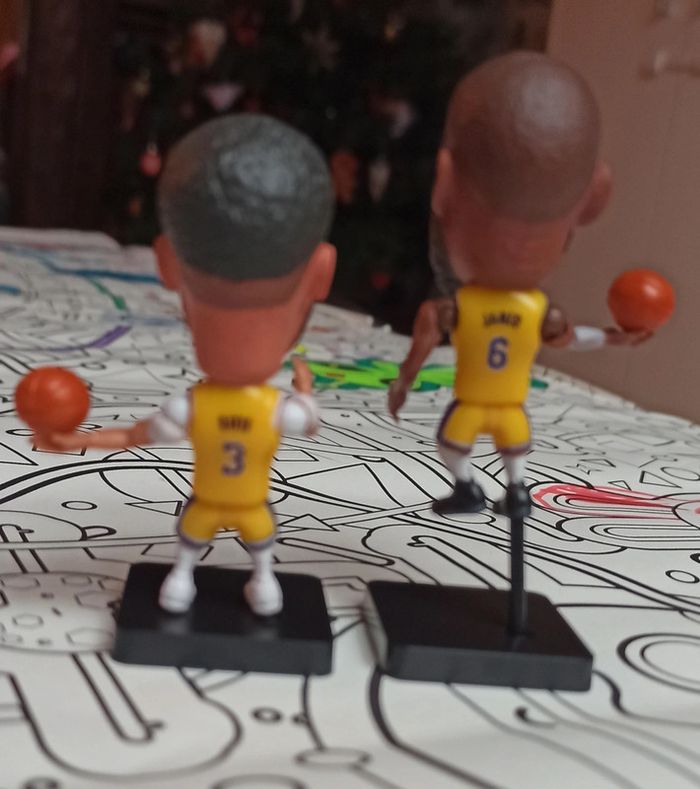2 Petites figurines Basket NBA neuves dans emballage Franchise des Los Angeles Lakers LeBron James Anthony Davis Figurine 7cm environ Sur socle. Joueur articulé, avec ballon fixé dans la main J'ai quelques autres joueurs comme LeBron James, Jimmy Butler, James Harden, ANTETOKOUNMPO, Stephen Curry etc, et d'autres franchises comme Miami Heat golden State warriors Brooklyn nets Houston Rockets etc Regardez dans mon dressing