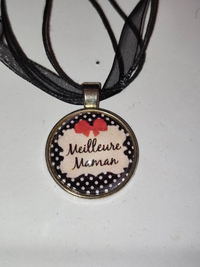 Collier noir avec cabochon en verre de 25mm fait main meilleure maman Idée cadeau fête des mères 🎁 #julierosova_faitmain #julierosova_creation #fetedesmeres