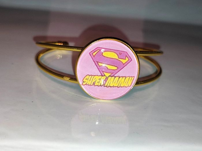 Bracelet coloris doré avec cabochon en verre fait main de 25 mm Super Maman Bracelet réglable Il y a un impact sur le bracelet ( abîmé lors d'une expo donc le prix a été baissé) #julierosova_faitmain #julierosova_creation #braceletfantaisie #fetedesmeres