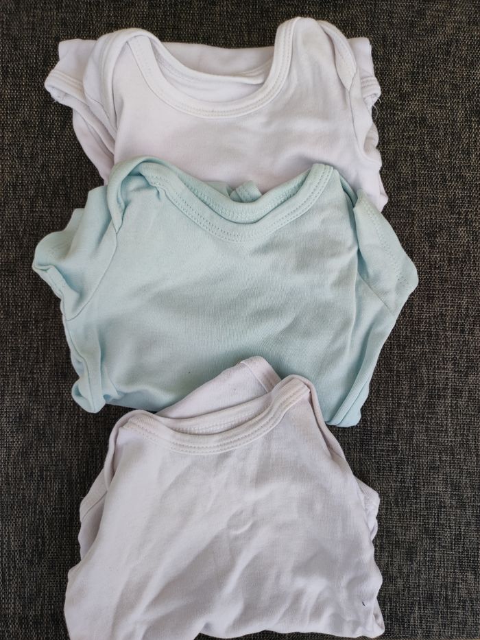 Lot de 3 body manches courtes mixte Taille 3 mois 2 blancs et 1 bleu