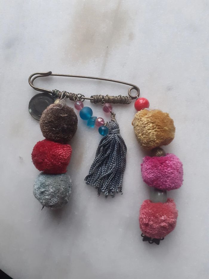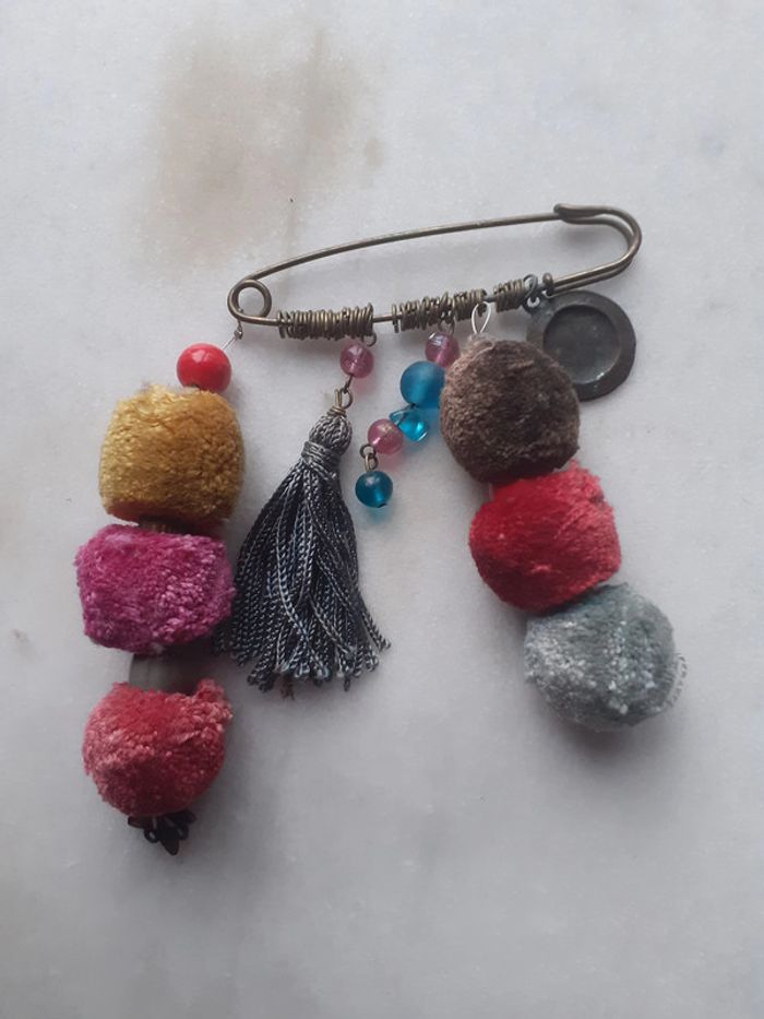 Broche pompom colorés