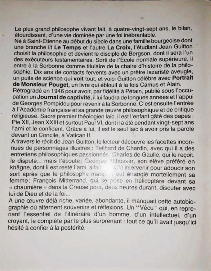 Dans son autobiographie " Un siècle, une vie " Editions Robert Laffont 1988 Mémoires d'un philosophe Jean Guitton est mort le 22 mars 1999. Etat d'usage #Histoire #autobiographie #guitton #philosophe