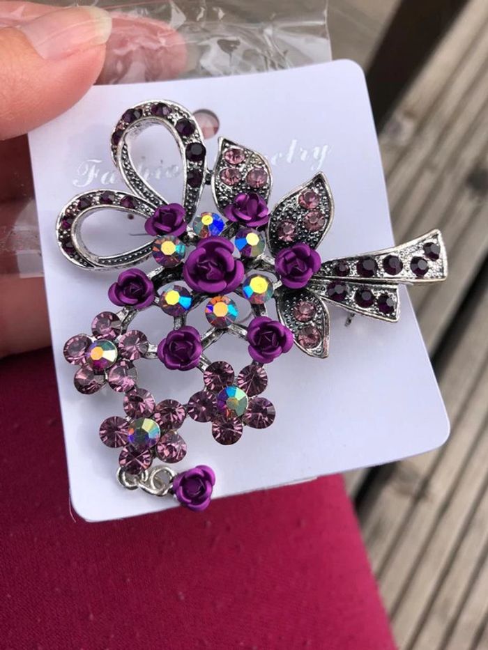 très belle broche fleur violet neuve La taille ajustable est fausse bien évidement ;-)