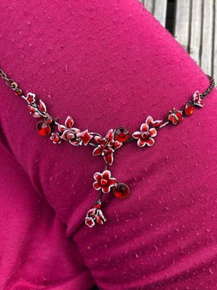Collier fleur rouge vintage - photo numéro 6
