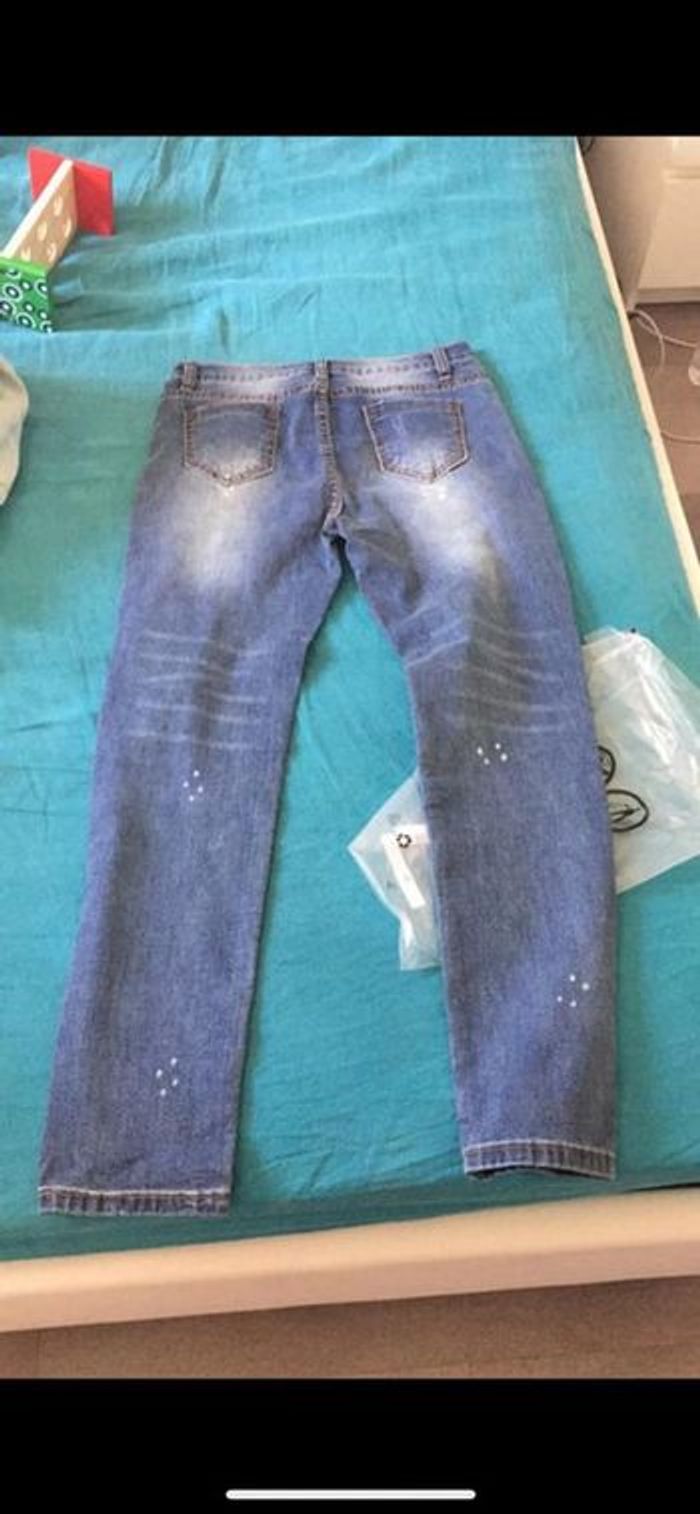 Pantalon jeans en denim effet déchiré Neuf, reçu hier, ouvert de son emballage uniquement pour essayer mais malheureusement cela ne me va pas :-(