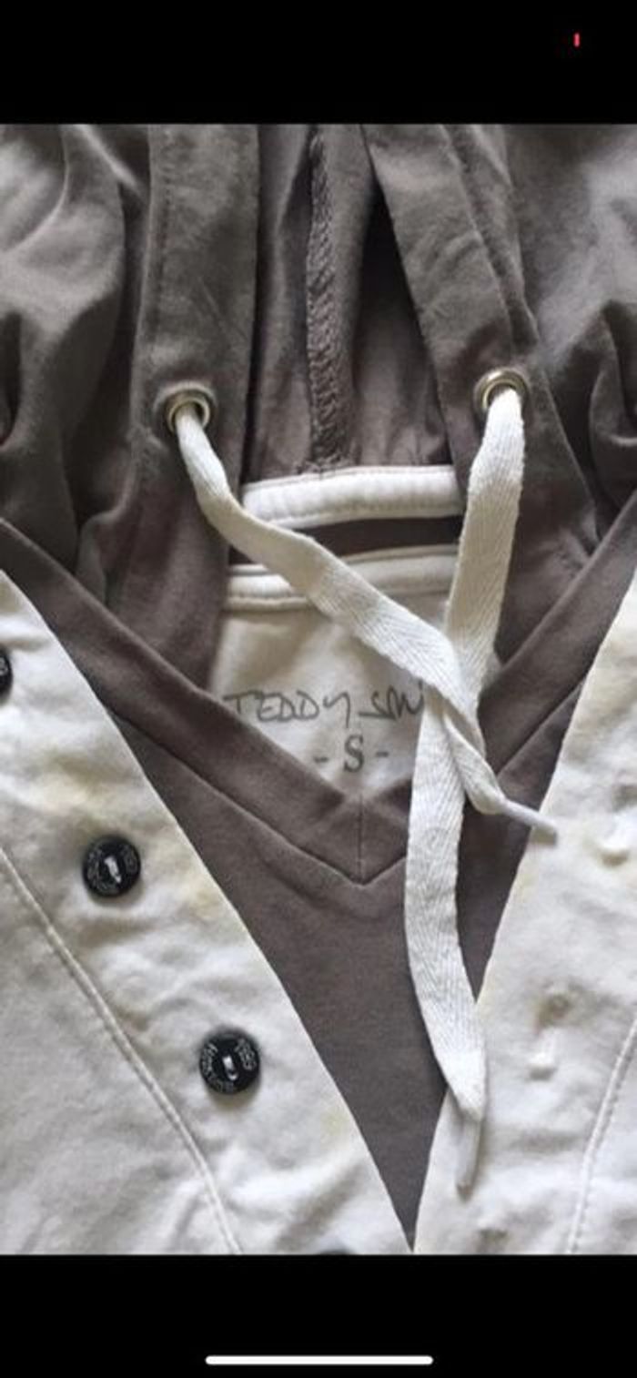 Manche longue Teddy smith avec capuche traces jaunes qui partent surement au lavage (voir dernières photos)