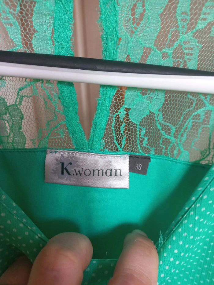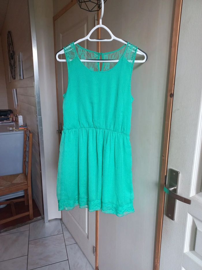 Robe verte clair à pois blanc Taille 38 Dentelle