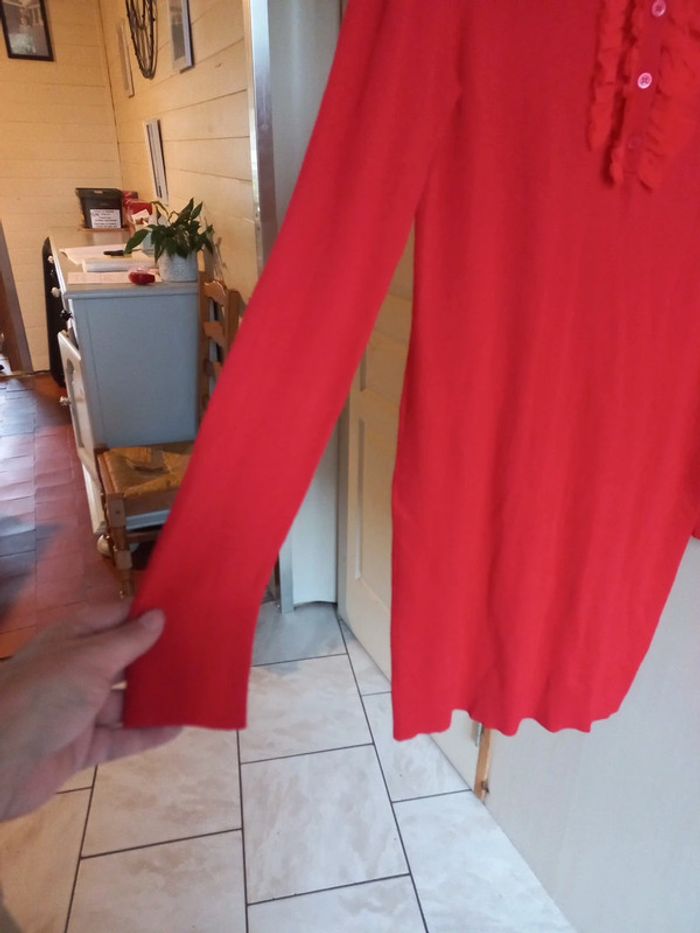 Robe pull Rouge Manches longues Mini trou dans le dos Taille 38