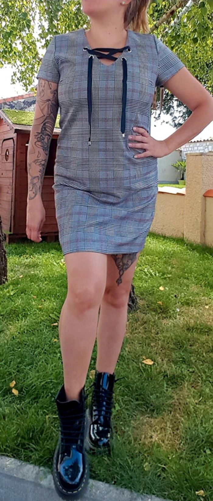Col V avec galon et oeillets Robe manches courte Idéale été comme hiver, pour un style casual et rock à la fois
