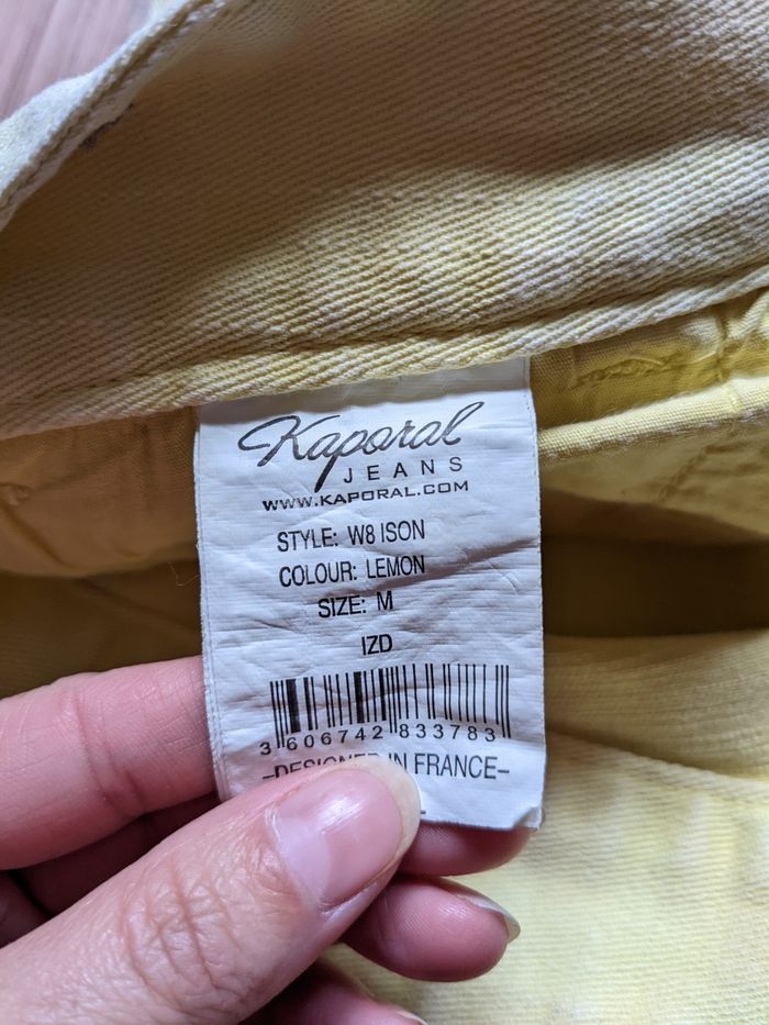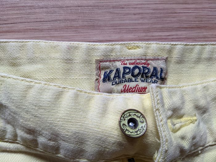 Short en jean jaune pâle Marque Kaporal Super état, peu mis car trop grand pour moi. Marque de qualité Taille M