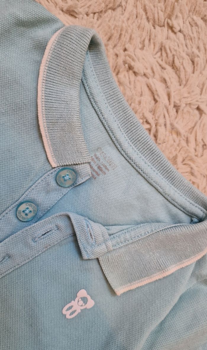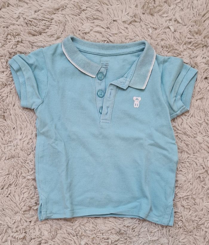 Polo bleu manches courtes Obaïbi taille 18 mois Légères tâches sur le col, se voit très peu (voir photo 2)
