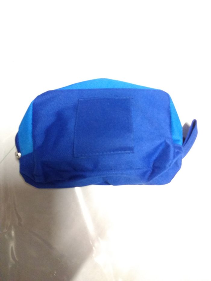 Petite trousse à médicament de couleur bleu l'intérieur contient un filet permettant de séparer les articles. Les dimensions sont les suivantes : 18 cm de large 11 cm de haut 5 cm d'épaisseur, fermée .