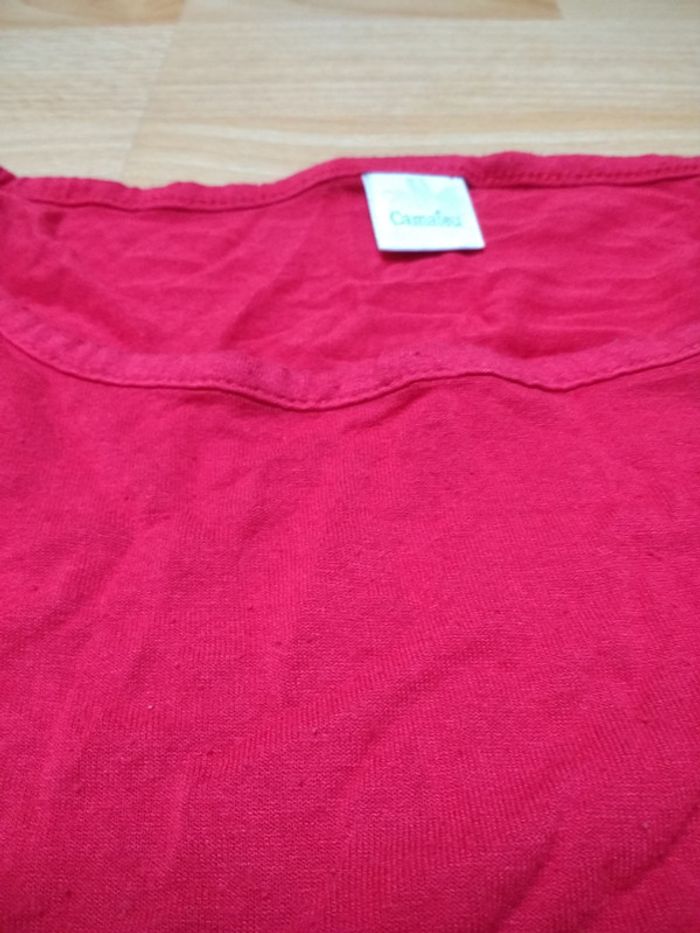 T-shirt rouge camaïeu taille XS 96 % viscose 4 % élasthanne quelques bouloches à noter.