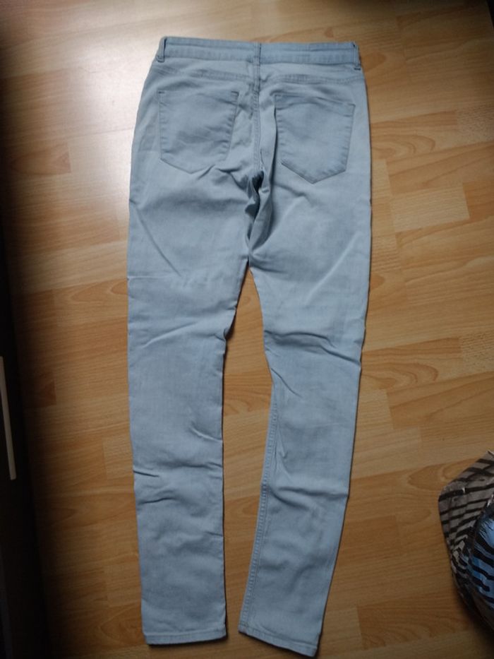 Jean bleu clair skinny fit de taille 36 de marque Kiabi fermeture à zip composition 75 % coton 25 % polyester 2 % élasthanne.