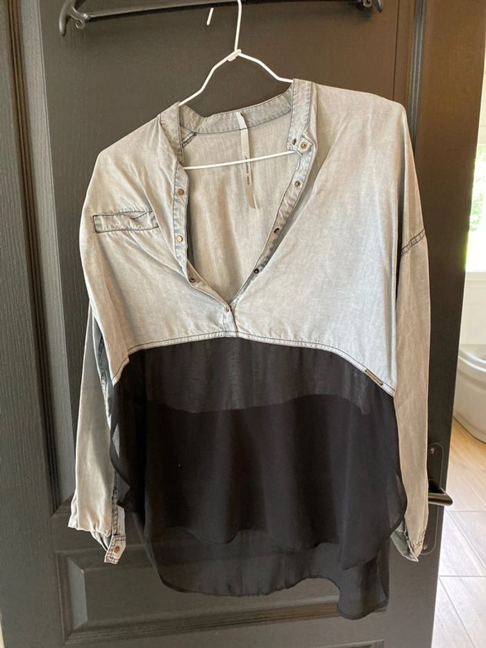 Chemine haut jeans bas dentelle noir Cop copine Légère